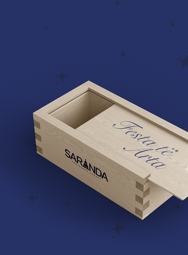 The Saranda Christmas Market logo combines bold typography with festive symbolism to create a strong and recognizable seasonal identity.