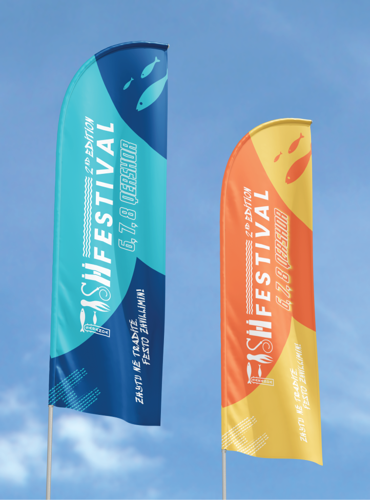 The Saranda Fish Festival logo is designed as a playful yet refined visual system that reflects the festival’s strong connection to the sea, gastronomy, and local tradition. The logotype integrates custom icons inspired by marine life and culinary elements, creating a dynamic composition that feels both contemporary and authentic.