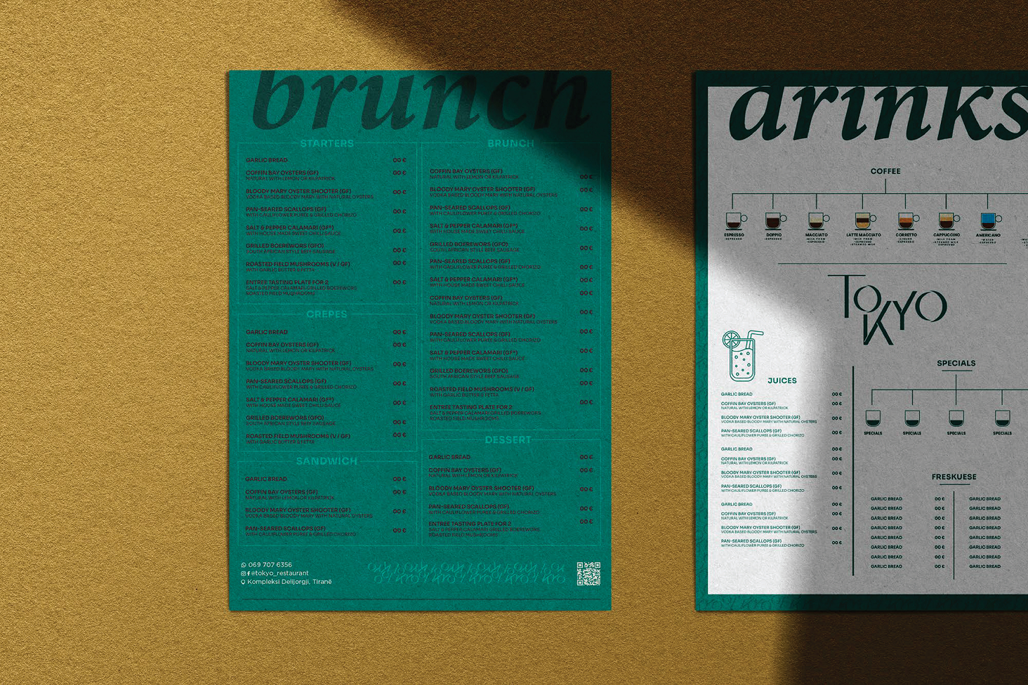 The brand identity was further developed through a cohesive stationery system, ensuring consistency across all brand communications. Business cards, menus, and printed materials were designed to reflect the logo’s conceptual language and reinforce the restaurant’s visual personality.